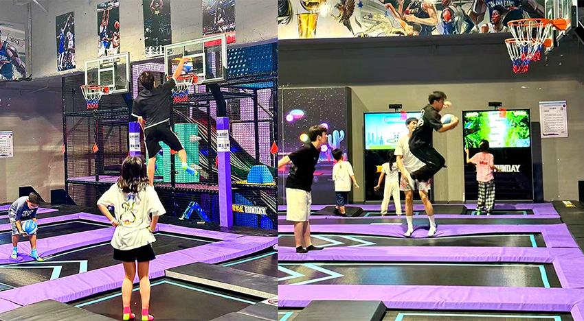 蹦床競技區(qū)是集自由蹦床、海綿池、拍拍樂、蹦床灌籃等于一體的綜合運(yùn)動區(qū)域。可以體驗一把扣籃的感覺和海綿池斗智斗勇的對決!也可以進(jìn)行各種團(tuán)建活動。